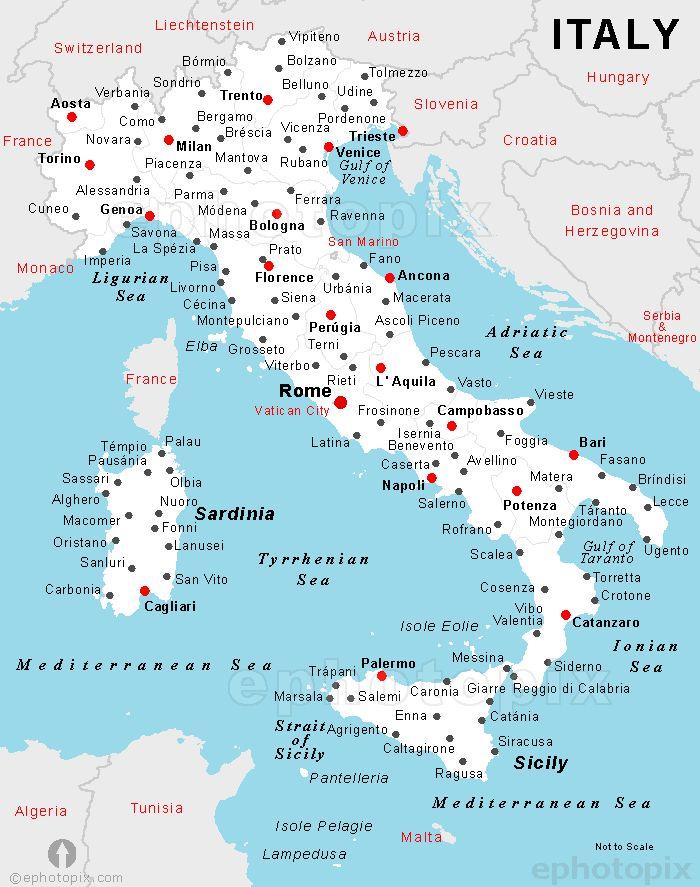 Map of Italy with city names. Italy city map (Southern Europe - Europe) to print. Italy city map (Southern Europe - Europe) to download. There are only a handful of Italian city names with distinct English names. Some of the more prominent: Rome = Roma, Florence = Firenze, Venice = Venezia, Milan = Milano, Genoa = Genova, Naples = Napoli, Turin - Torino as its shown in Italy city map. Italian coastal cities with their paint-me-pastel pinks, freshly caught seafood, and boating with the best vino in hand are the stuff Mediterranean-getaway dreams are made of.