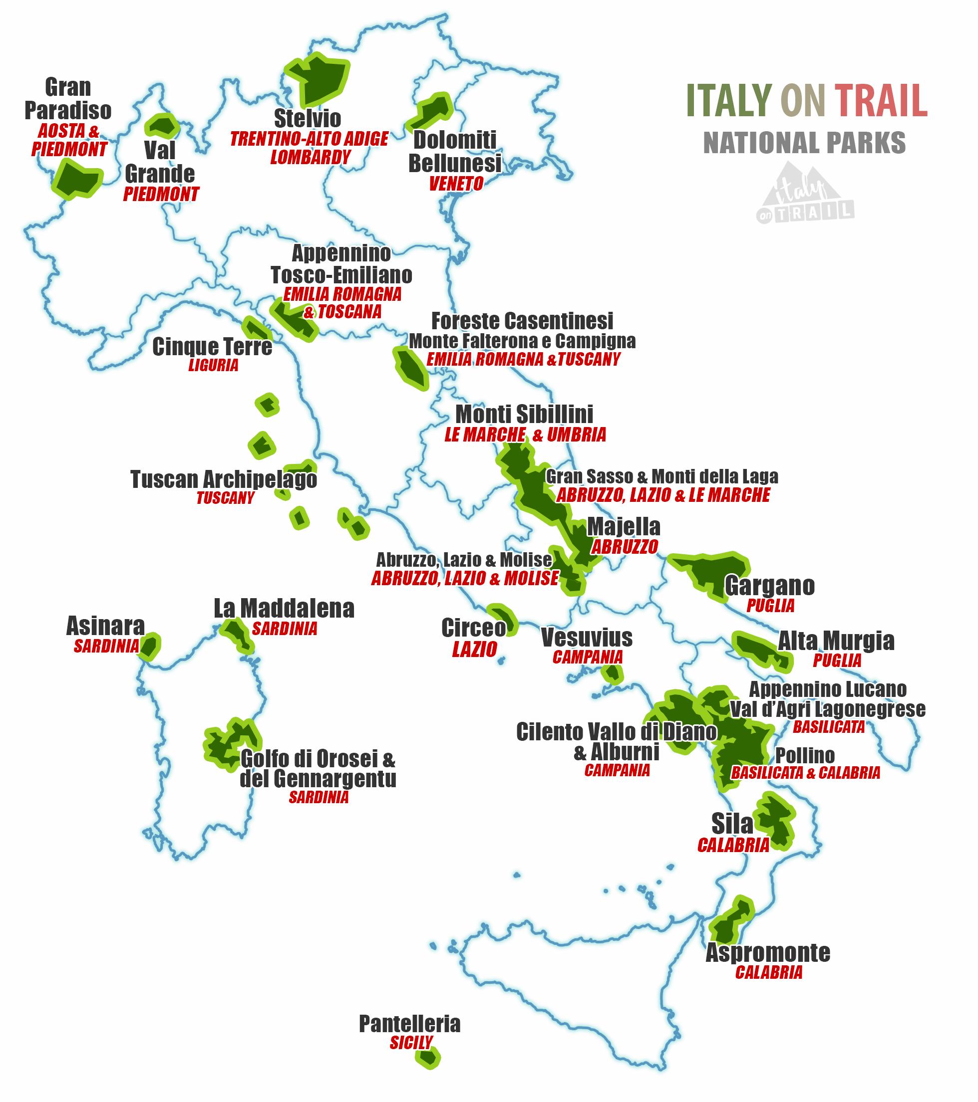 Italy national parks map. Italy park map (Southern Europe - Europe) to print. Italy park map (Southern Europe - Europe) to download. Italy national parks represent the true natural, scientific, cultural and historical heritage of the country. In Italy, there are 24 beautiful national parks located throughout the country for visitors to discover as its shown in Italy park map. Located from north to south in Italy, the parks cover a total of more than 15,000 km2 or about 5% of the Italian territory. These are not demarcated territories with a unique logo and no one has to pay entrance fees. It even happens that tourists visit iconic places such as Cinque Terre or Vesuvius, without even knowing that they are in a National Park. Italian national parks are very different from North American parks because of the human presence and economic activities taking place in the territories of these parks.